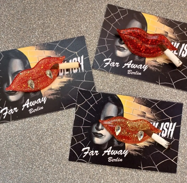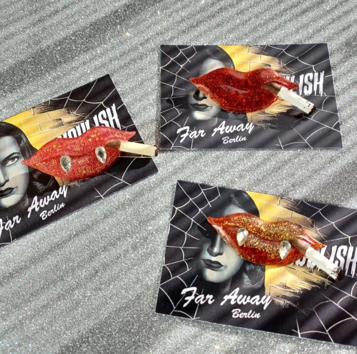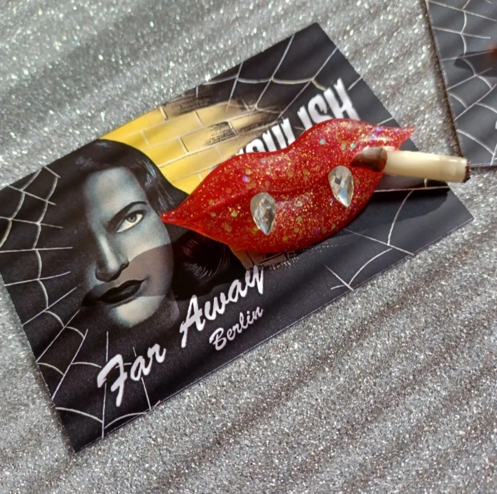 ❤ Elegant Red Glitter Smoking Lips with Rhinestones Fangs (or without fangs if you prefer to keep your secret ) Inspired by ” I Vampiri”  an 1957 Italian horror film, you can find the complete movie in YouTube.