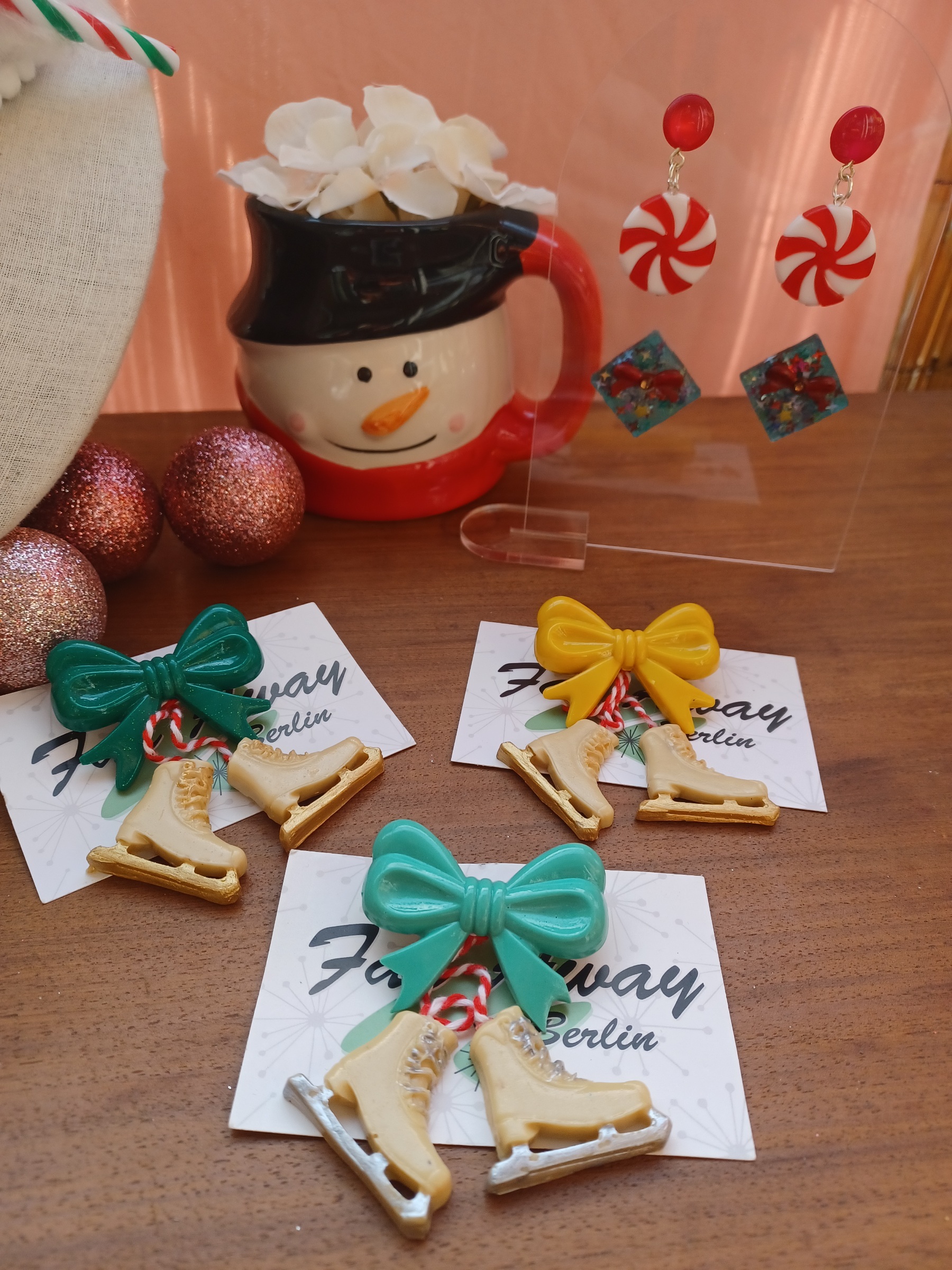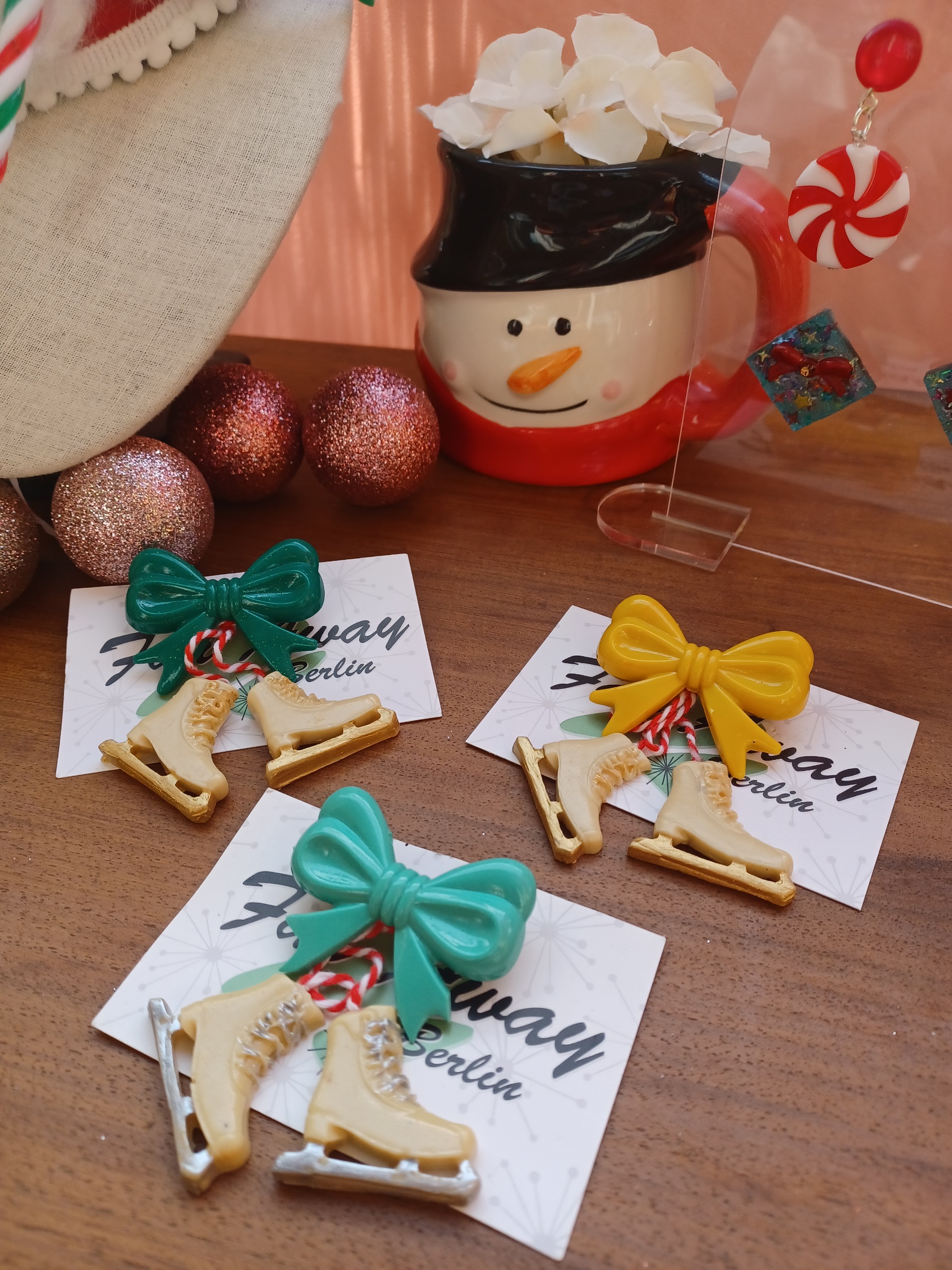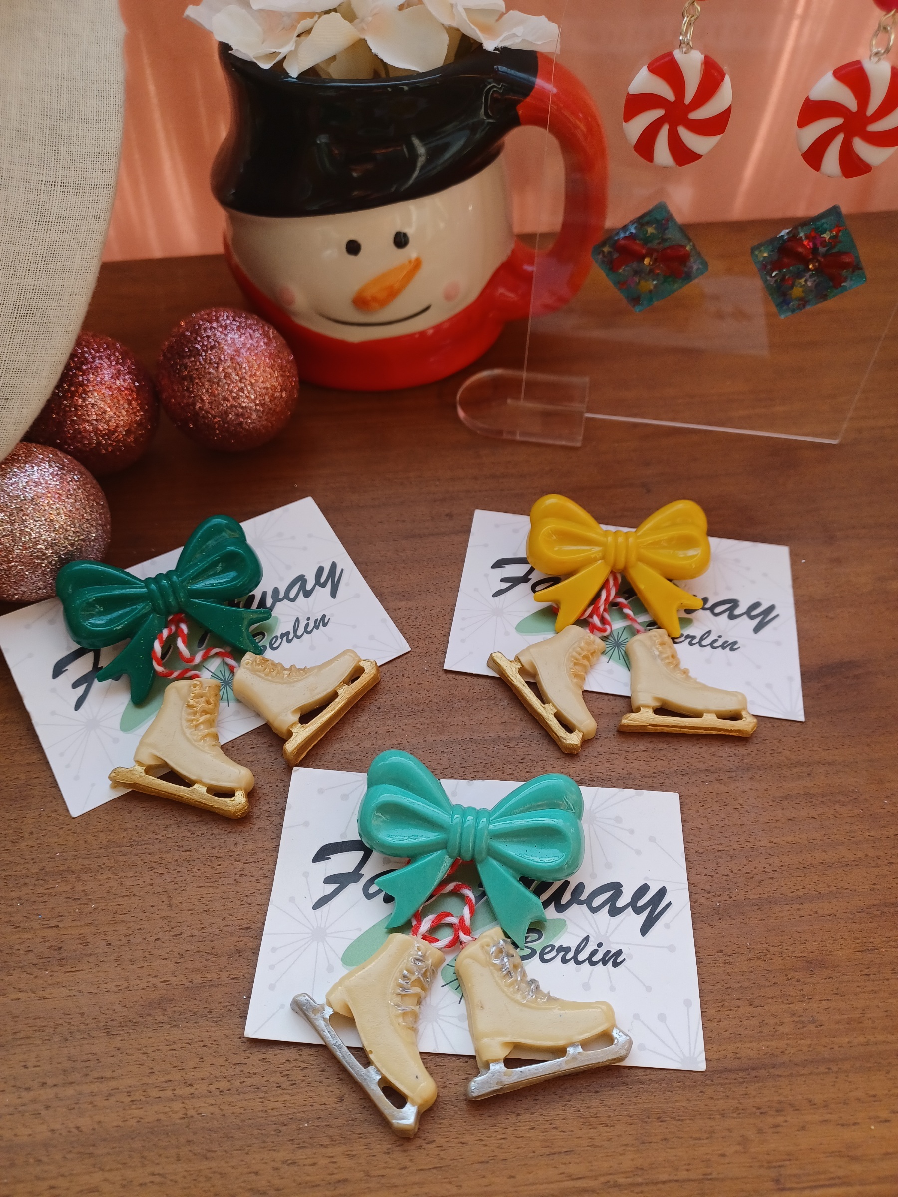 Ice Skate Brooch with Bow ⛸️🎀 Capture the magic of winter with our Ice Skate Brooch!Perfect for adding a vintage holiday charm to any outfit